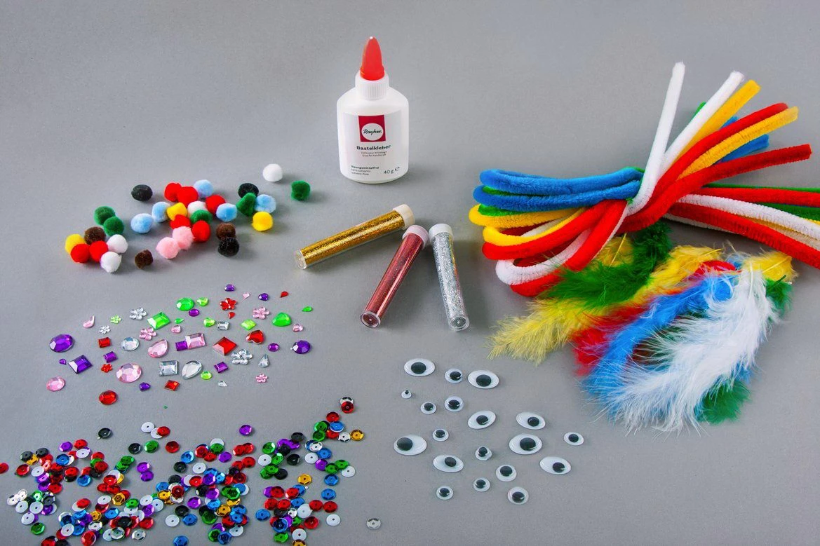 Bastelset mit reichlich Auswahl für verschiedene Bastelarbeiten.