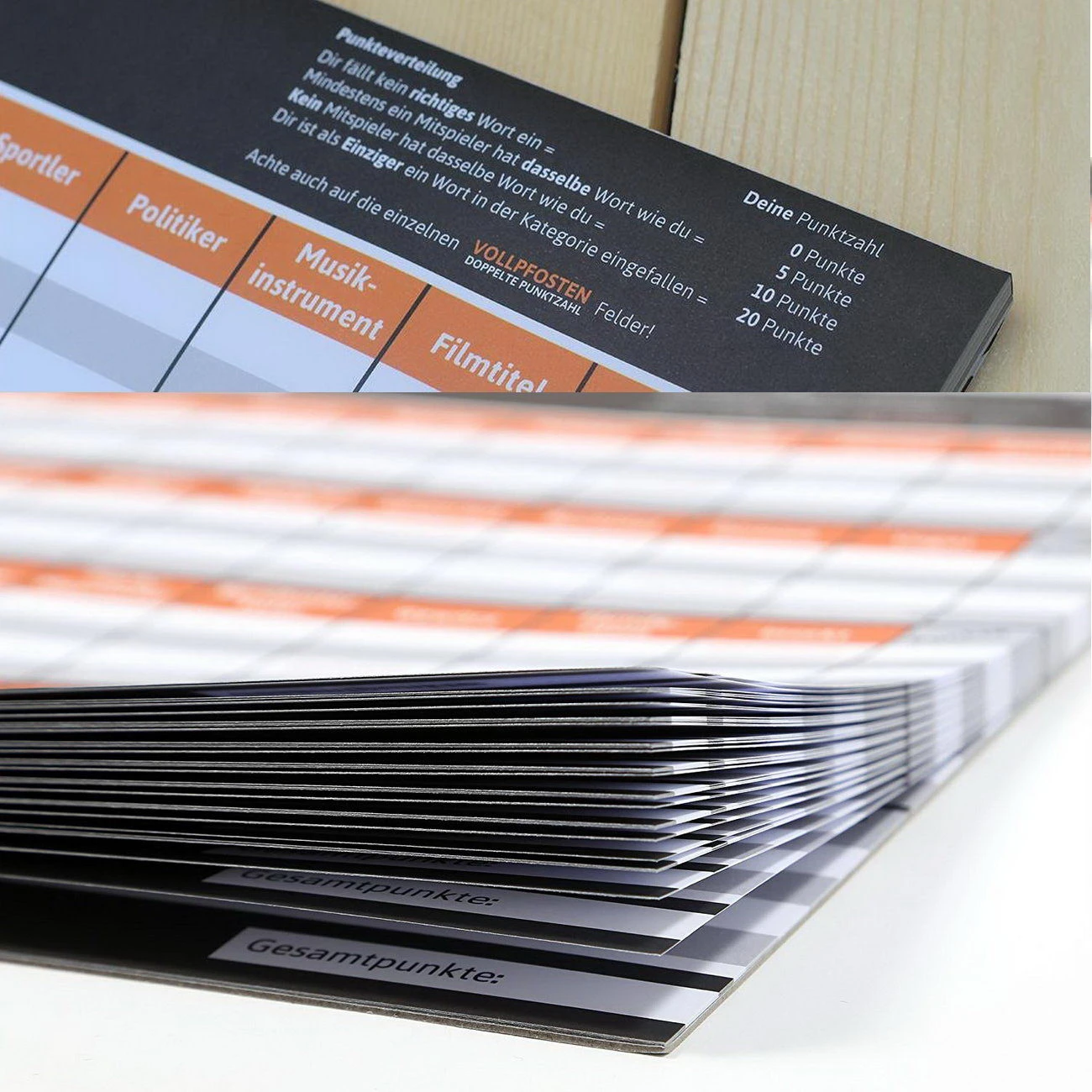 Nenne eine Automarke mit M. Oder einen Filmtitel mit K. Gar nicht so einfach, manche Kategorie. 43 kreative und lustige Kategorien bringen jeden Hobbydenker auf Touren. Und der Spaß ist garantiert!