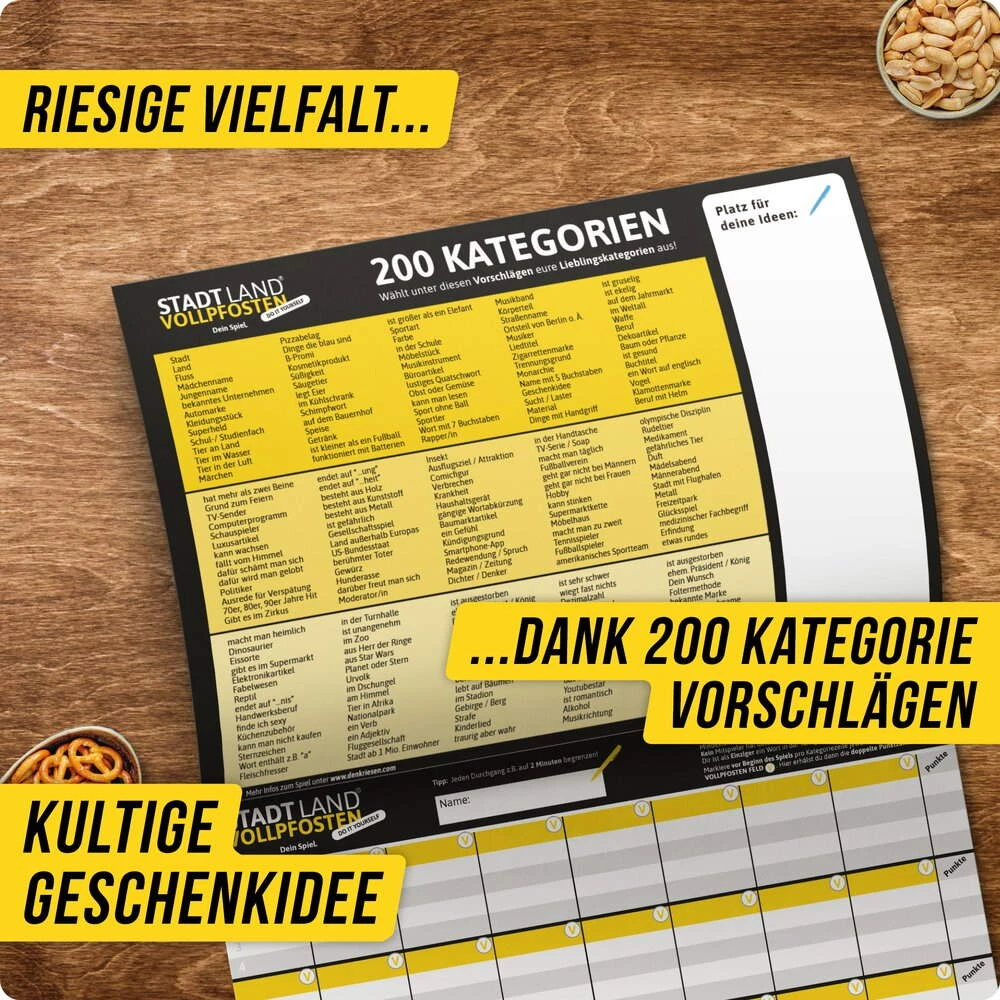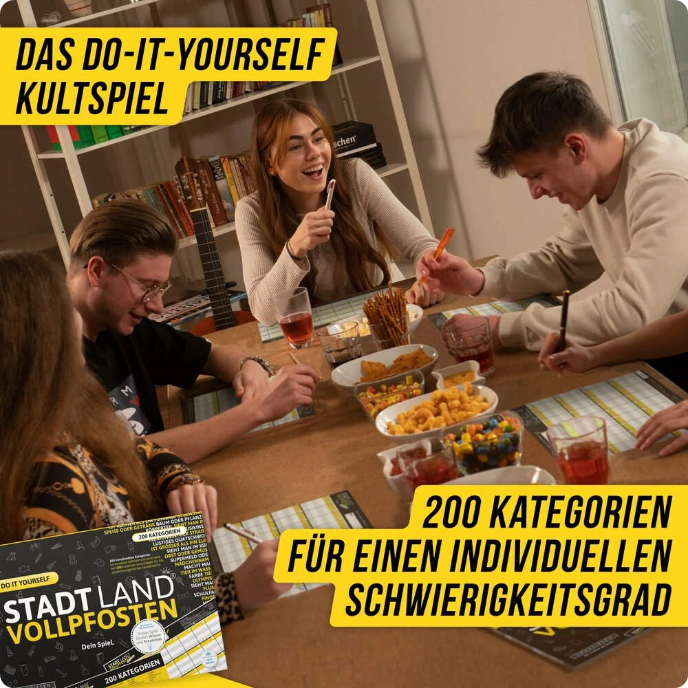 Der ultimative Spielblock beinhaltet 200 kreative Kategorievorschläge für ein unvergessliches Spielerlebnis mit individuellem Schwierigkeitsgrad. Spaß garantiert!