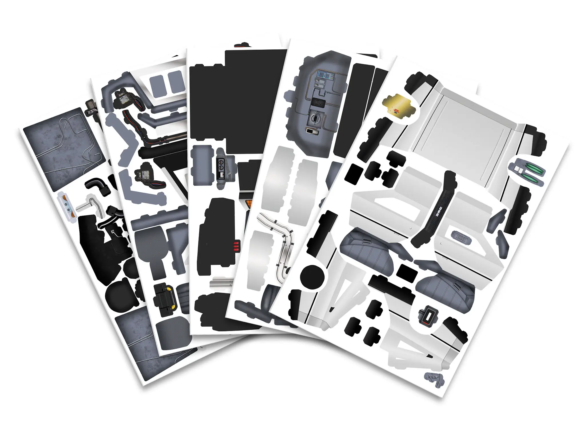 Maße 3D-Puzzle – DeLorean: Länge: 34,9cm – Breite: 15,7cm – Höhe: 21cm