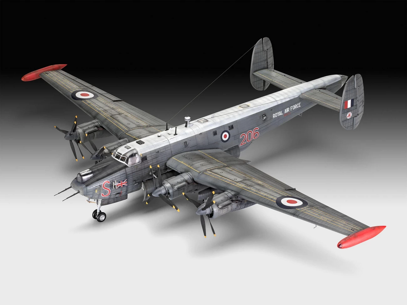 Modellbausatz der Avro Shackleton MR.3, einem berühmten Langstrecken-Seeaufklärer der RAF. Ab 1955 wurde die Version MR. 3 in Dienst gestellt; sie erhielt ein Bugfahrwerk, Zusatztanks und teilweise ein Viper-Zusatztriebwerk.