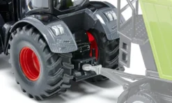 Der bullige Fendt-Traktor zieht das Hakenlift-Fahrgestell mit niedriger Baustoffmulde ins Programm des Farmer50-Sortiments. Die Anhängerkupplungen an Front und Heck sowie ein abnehmbares Dach versprechen Spielspaß. Die Mulde kann wie beim Original vom Fahrgestell abgelassen und heraufgezogen werden.